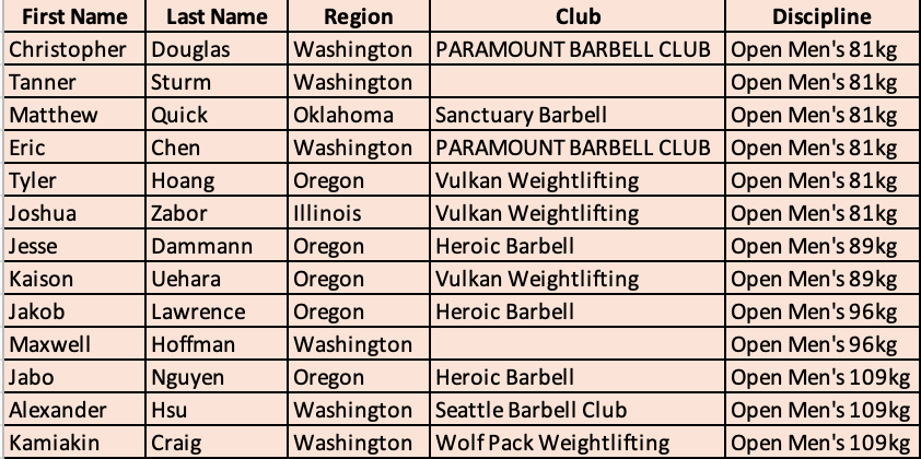 Below you can find all of the Pacific Northwest athletes competing in the 2023 USAW Nationals Week. There are seven categories including U11, Youth, Junior, U23, U25, Open and Adaptive represented during this event. Look for your favorite athletes! FINAL schedules are available under each section to locate day and time. LIVE STREAM information can be found HERE.
